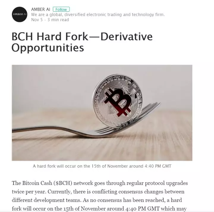 On Nov. 15, a day after the Bitcoin Cash futures settled, a technical malfunction at OKEx left traders unable to execute orders for more than two hours, during a time of heightened market volatility, Amber AI said in a blog post on Monday titled「OKEx-- It』s Time to Pay the Piper.」The firm called for「regulation and transparency at OKEx in order to promote and maintain a healthy and fair trading environment.」